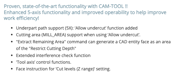 New Function of CAM-TOOL for NX Version 5.1