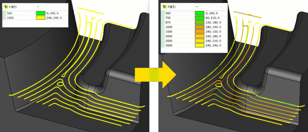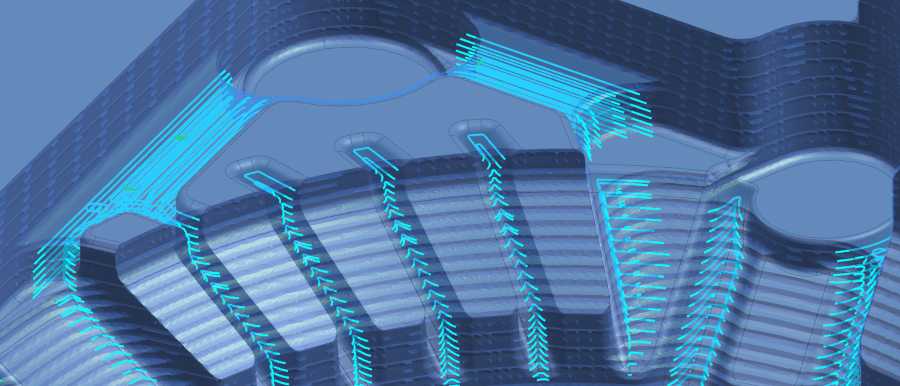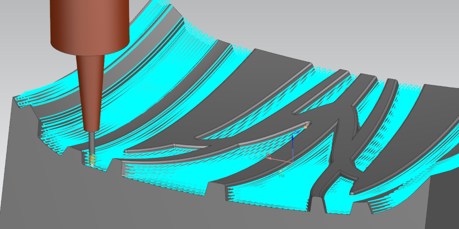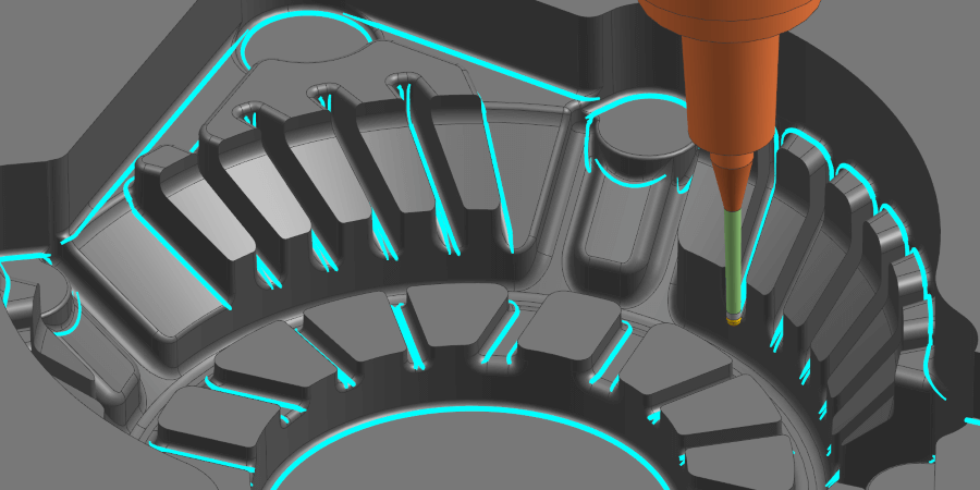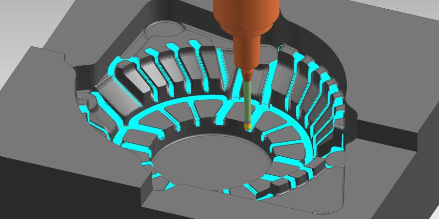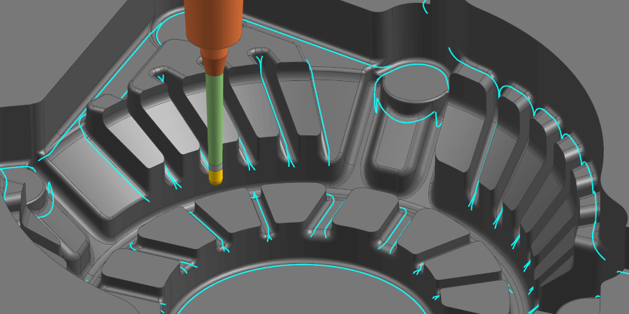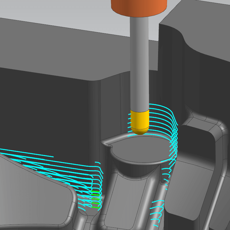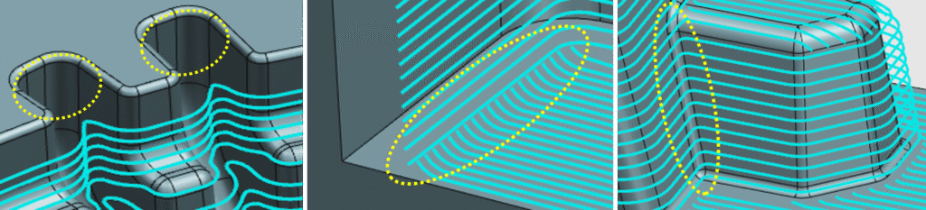 การสร้างเส้นทางเครื่องมือสำหรับส่วนสันนูนเว้า ซึ่งมักใช้เครื่องมือตัดขนาดเล็ก สามารถลดภาระการตัดได้ เนื่องจากระบบจะควบคุมทิศทางการตัดโดยอัตโนมัติตามมุมของสันนูน นอกจากนี้ ระบบ “Driving-in” ซึ่งช่วยขจัดวัสดุออกทีละขั้นตอน ซึ่งยังช่วยรักษาเส้นทางไว้