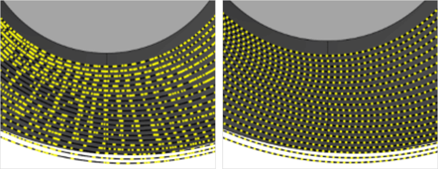 การสร้างเส้นทางเครื่องมือตามทิศทางตาข่ายของพื้นผิวที่กำหนด โหมดการตัดนี้มีประโยชน์สำหรับการกลึงเพิ่มเติมและการกลึงชิ้นส่วน และยังคำนึงถึงความปลอดภัยของกระบวนการสำหรับช่องว่างระหว่างพื้นผิวด้วย