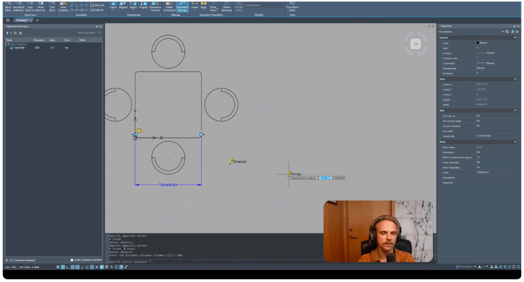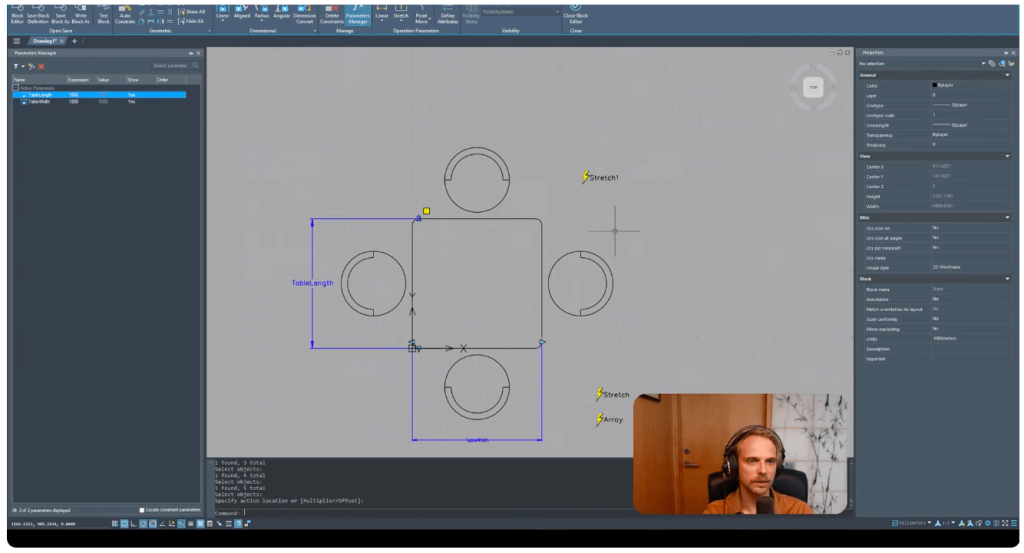 สุดท้ายนี้ เขาได้เพิ่มพารามิเตอร์เชิงเส้นอีกตัวหนึ่งและการยืดตัวสำหรับความยาวของตาราง ทำให้บล็อกสามารถปรับขนาดได้ทั้งสองทิศทาง แม้ว่ายังต้องปรับแต่งอีกเล็กน้อย แต่เวิร์กโฟลว์นี้แสดงให้เห็นถึงความยืดหยุ่นและประสิทธิภาพของ Flexiblock ของ ZWCAD ในการสร้างส่วนประกอบการออกแบบที่นำกลับมาใช้ใหม่ได้อย่างมีประสิทธิภาพ