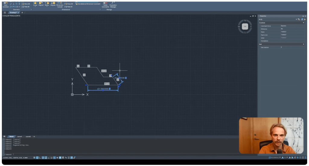 หลังจากกำหนดความสัมพันธ์ทางเรขาคณิตแล้ว เขาจะเพิ่มข้อจำกัดด้านมิติเพื่อล็อกการวัดเฉพาะ การเปลี่ยนแปลงค่าเหล่านี้จะอัปเดตรูปร่างโดยอัตโนมัติ ซึ่งแสดงให้เห็นว่า ZWCAD ช่วยให้สามารถควบคุมการออกแบบซ้ำได้อย่างแม่นยำและไดนามิก ฟังก์ชั่นนี้มีประโยชน์อย่างยิ่งสำหรับการสร้างแบบร่างที่ปรับเปลี่ยนได้และอิงตามกฎเกณฑ์ และช่วยเพิ่มประสิทธิภาพในการร่าง