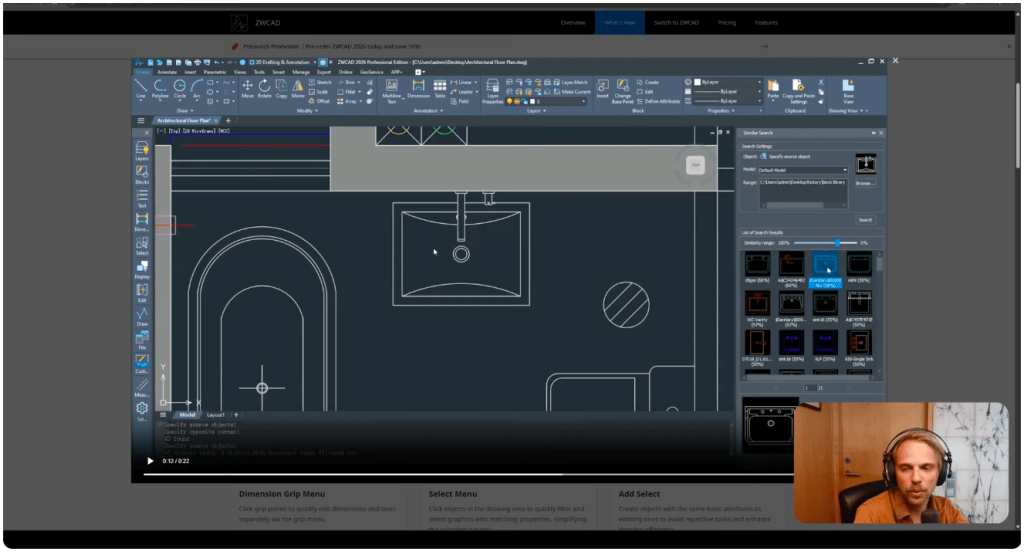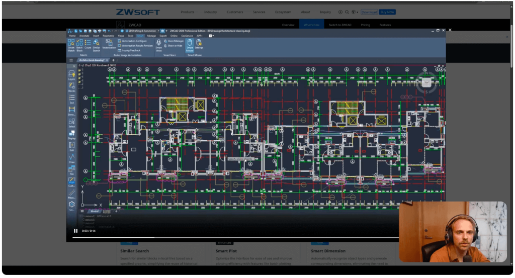 ดังนั้นจึงมีการปรับปรุงเพิ่มเติมมากมาย ควบคู่ไปกับฟีเจอร์ใหม่ที่สำคัญ เช่น Similar Search และ Smart Match การปรับปรุงเหล่านี้ช่วยเพิ่มประสิทธิภาพได้อย่างมาก สะท้อนให้เห็นถึงการผลักดันอย่างชัดเจนสู่ระบบอัตโนมัติใน ZWCAD เวอร์ชั่นนี้ ซึ่งเป็นทิศทางที่ Gediminas คาดหวังไว้