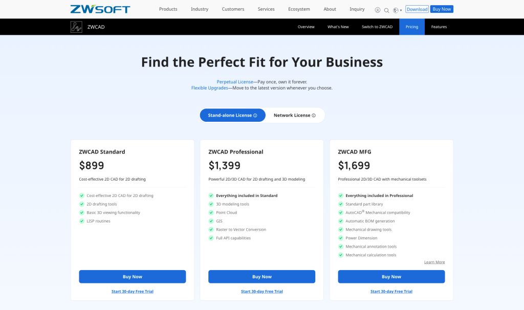 สำหรับวัตถุประสงค์ด้านสถาปัตยกรรมและ CAD ทั่วไป ZWCAD Standard ตอบสนองความต้องการโครงการทั่วไปได้ประมาณ 99.9% ผู้ใช้ที่ต้องการฟีเจอร์ขั้นสูง เช่น การจัดการข้อมูลแบบพอยต์คลาวด์ หรือการผสานรวมระบบ GIS ควรพิจารณา ZWCAD Professional Edition ซึ่งมีเครื่องมือเพิ่มเติมที่ออกแบบมาสำหรับเวิร์กโฟลว์เฉพาะทางเหล่านี้ นอกจากนี้ ZWCAD ยังมีบริการทดลองใช้ฟรี 30 วัน ซึ่งคุณสามารถดาวน์โหลดได้ที่นี่ เพื่อสำรวจฟังก์ชั่นการทำงานทั้งหมดก่อนตัดสินใจ